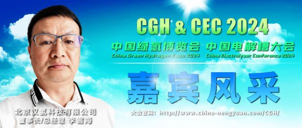 为了共同探讨电解槽技术优势和发展,2024年7月4-5号“CGH2024 中国绿氢博览会&CEC2024 中国电解槽大会”现场,北京汉氢科技有限公司董事长、总经理李雪海将分享《汉氢科技无极框电解槽技术介绍》的主题报告。