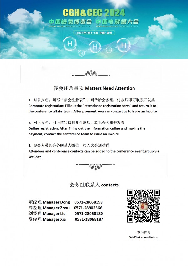 为响应绿色环保理念,助力能源低碳发展。“CGH2024 中国绿氢博览会&CEC2024 中国电解槽大会”将在风景秀丽的杭州举办!“氢”风已来,让我们共同建立氢能产业供应链上下游信息沟通与传播的平台,为促进行业发展贡献一份力量!