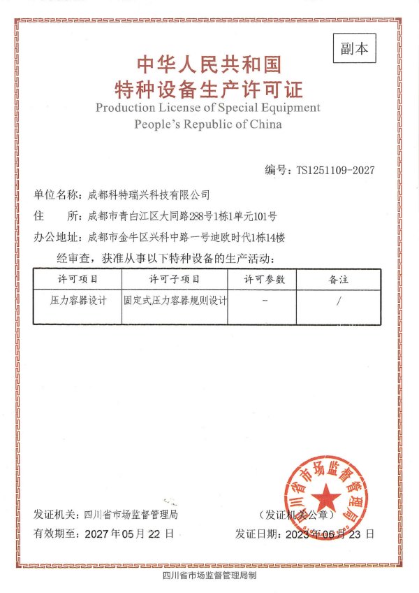 成都科特瑞兴科技有限公司成立于2012年,注册资金5000万元,是专注于气体分离与相关产品制备的工艺技术开发、工程设计、装备制造和工程总承包的高新技术企业。