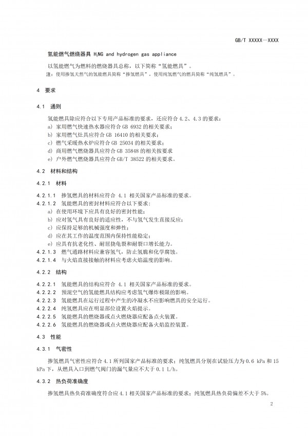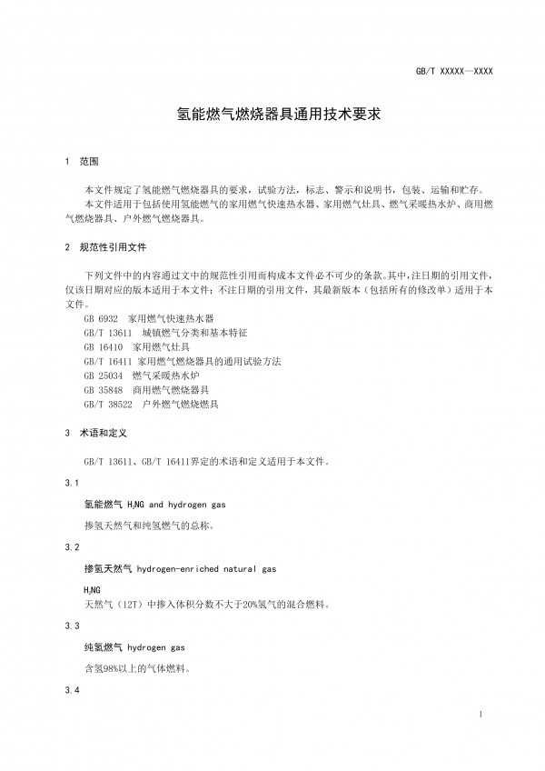 根据征求意见稿,该文件规定了氢能燃气燃烧器具的要求,试验方法,标志、警示和说明书,包装、运输和贮存。该文件适用于包括使用氢能燃气的家用燃气快速热水器、家用燃气灶具、燃气采暖热水炉、商用燃气燃烧器具、户外燃气燃烧器具。
