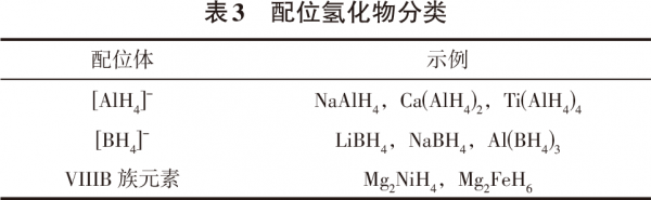 根据M的不同,配位氢化物可大致分为三大类,如表3所示[54]。