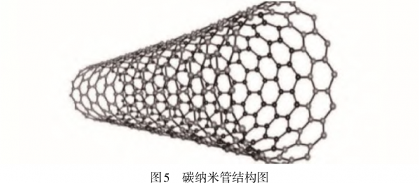 Nazir等[30]利用尿素和K2CO3改性活性炭,在77K/1bar下观察到高达2.21%的有效H2吸附容量。另外,利用硝酸镍浸渍改性活性炭纤维,改性后的活性炭纤维储氢量达到2.33%,提升28.4%,利用氨改性活性炭纤维,改性后活性炭纤维的储氢量达2.39%,提升35.8%[31]。碳纳米纤维较活性炭来说,其吸氢脱氢能力、比表面积都有了很大程度上的提升,利用镍(Ni)和氧化铈(CeO2)纳米粒子(NPs)对碳纳米纤维进行改性,增强了碳纳米纤维的储氢性能以及循环稳定性[32]。如图5所示的碳纳米管的中空结构以及表面的各种官能团为其良好的储氢性能奠定了基础[33],通过控制碳纳米管的生长方式也可以改善其的储氢性能[34],研究发现,H2吸附能力强烈依赖于碳纳米管的形态和结构特征及其比表面积。Edgar等[35]发现,比表面积为(729.4±3)㎡/g的碳纳米管最佳样品在12.79kPa的压力下可以显示出3.46%的氢气吸附容量。